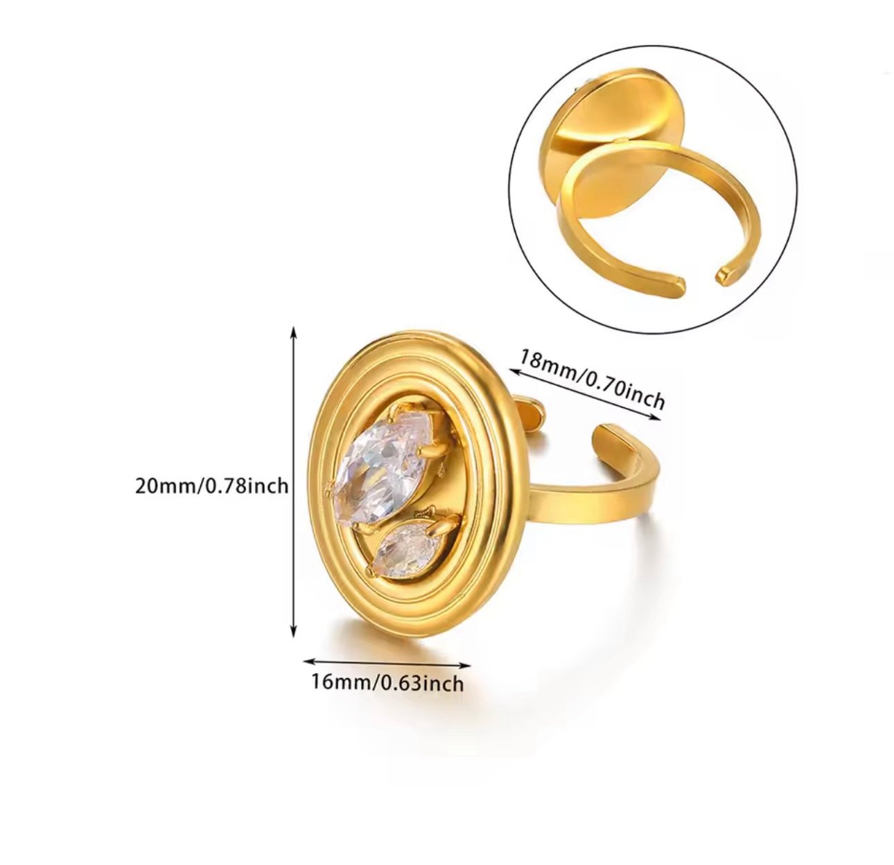 Flower Oval Ring Stainless Steel adjustable