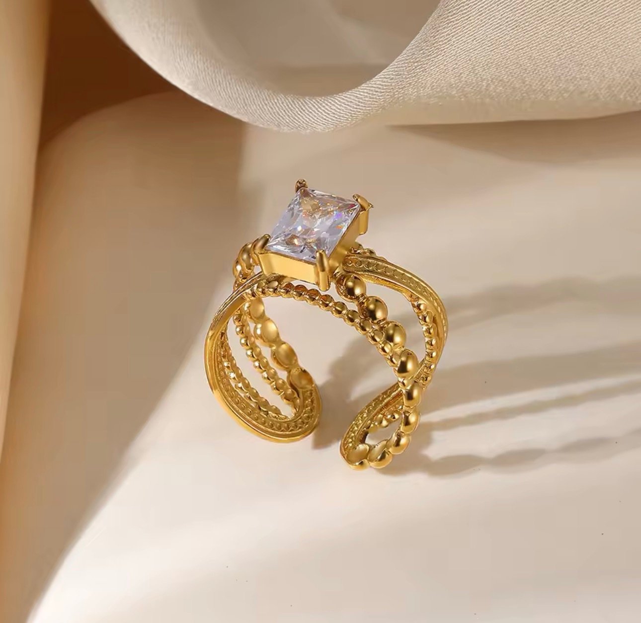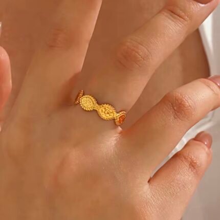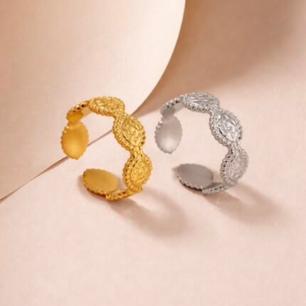 ر.ع.3.50Geometric Open Gold Plated Stainless Steel Adjustable ring