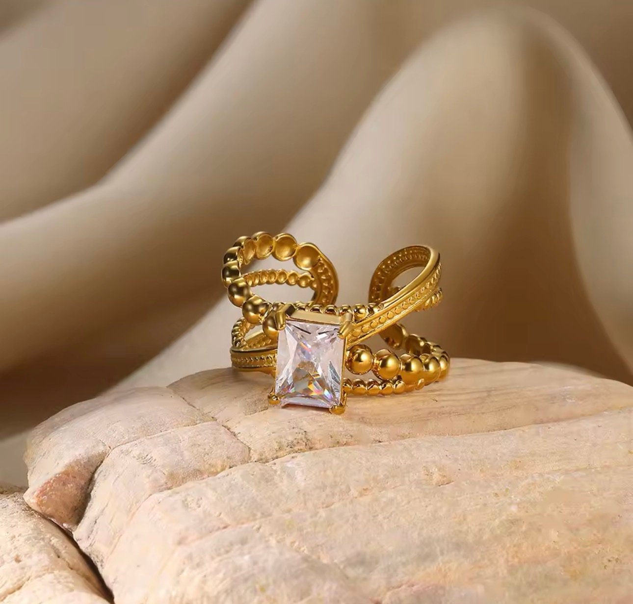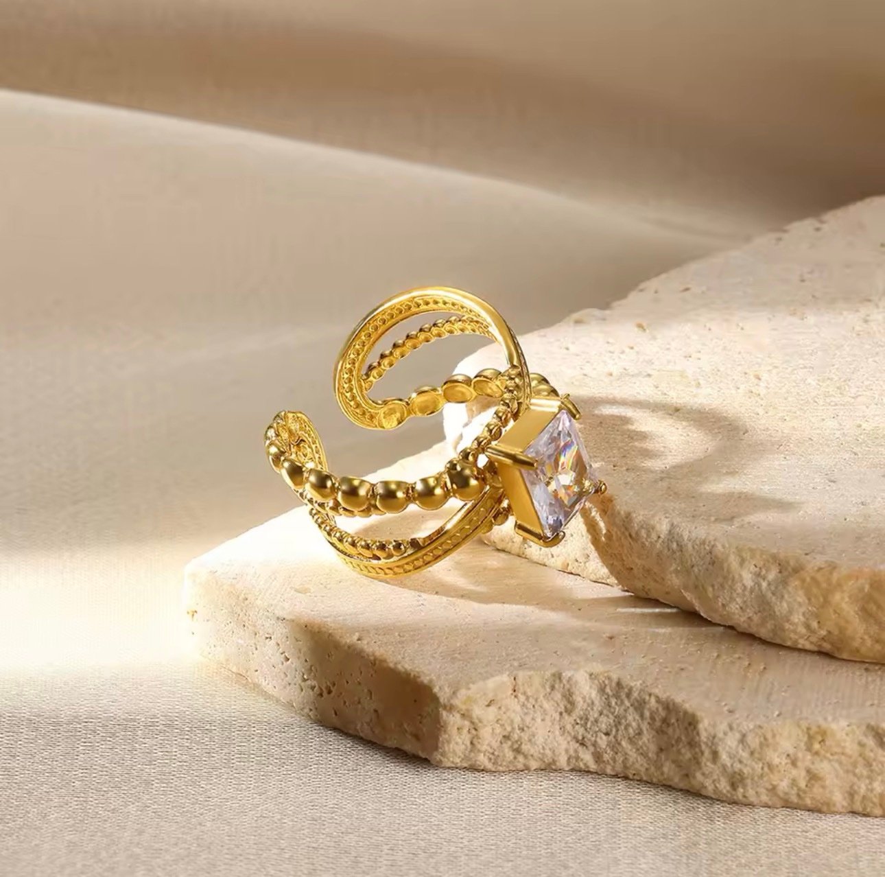 Adjustable Gold Plated Geometric colorful rings