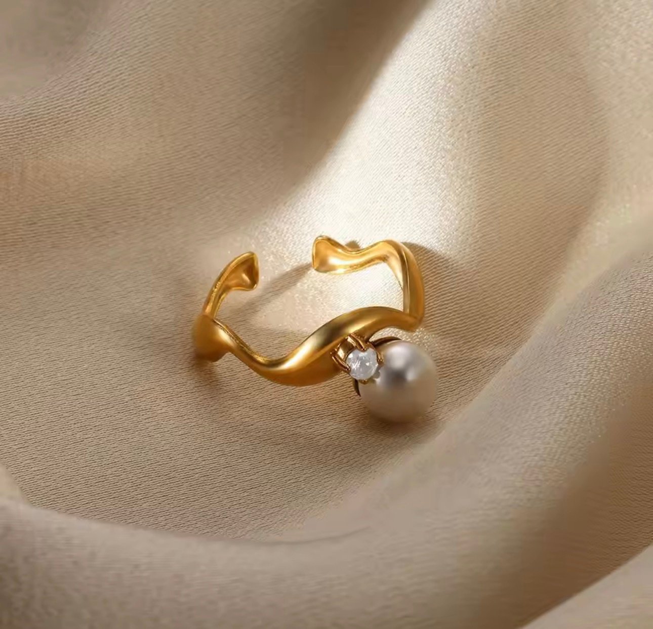 Stainless steel Pearl Adjustable Ring